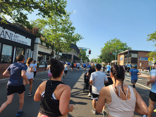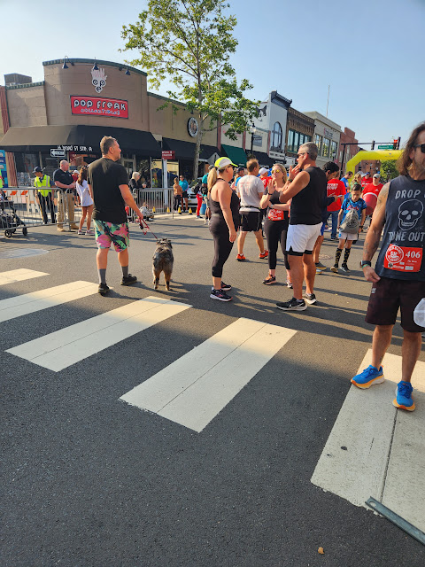 Lots of energy. I wasn’t nervous I was anxious to start. 1116 runners !!! So many puppy’s. Have to look into Hokas. So many people were wearing them.