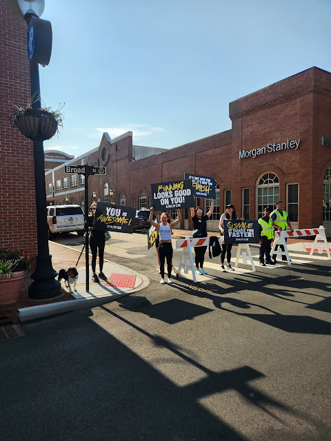 Went to broad st. For 8 am to get pre race photos and to see what was going on before the race. Lots of people hanging around. Everyone esteemed to know someone.