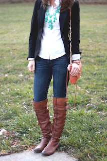 My favorite looks include Navy, cognac, silver and a pop of color.