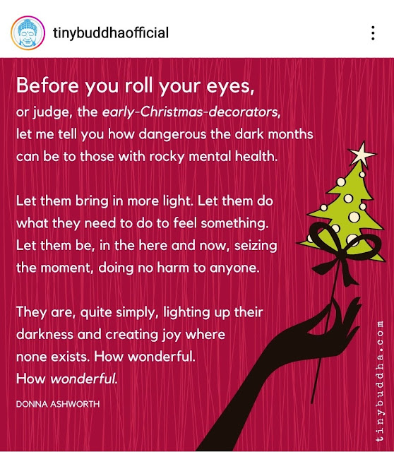 I found this image on Instagram from Tiny Buddha Official and I am an early-Christmas-decorator and this is perfect because if I can spread joy even more during this season, WHY NOT?! I will still have turkey’s out but they also might be wearing Santa hats or holding some Christmas item HAHA :