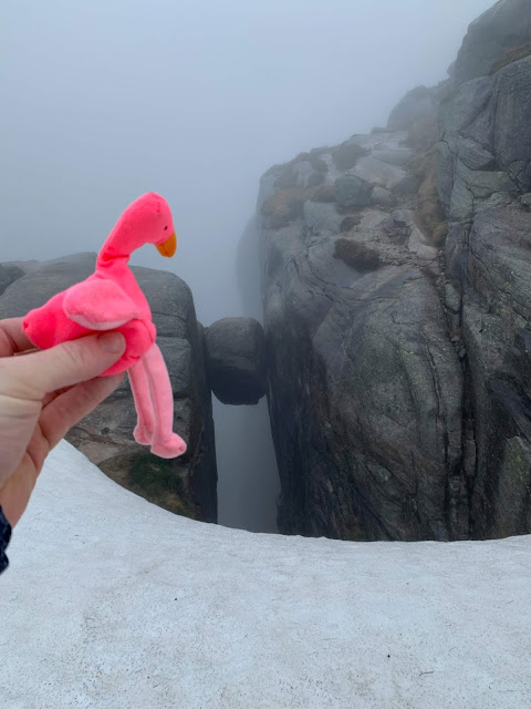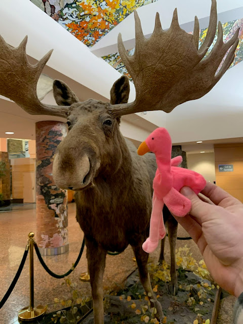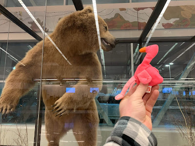 Penelope’s Mom- OG Penelope- has traveled around with me, mostly to doctors offices and hospital stays. (baby) Penelope joined Kyle back in February on a trip to Alaska. She was very curious about seeing snow and seeing a polar bear (I tried to explain to her she might not see one but she insisted). Kyle took great care of her and now she is living in his work backpack JUST in case he gets called on a work trip at any moment. Her passport is right next to Kyle’s and she loves all the neat knick-knacks he keeps in his backpack. She will occasionally sneak out of his backpack and wander around Kyle’s office and she has told me, there are so many SNACKS she has found. I think she is living her best flamingo life.