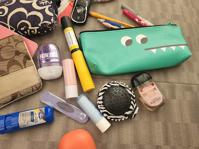 A mini nail file, blister block and a hairbrush are necessary especially when travelling. The two tubes of chapstick are my go to lately. The blue is just an everyday balm by Nivea and the pink is from Covergirl Clean Fresh tinted lip balm in “You’re the Pom” Its the best everyday color.
