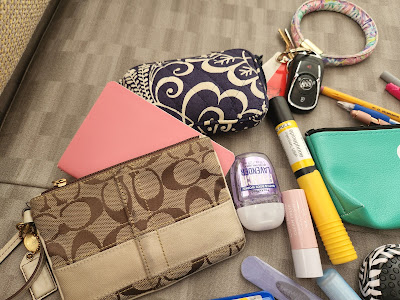 So that’s what’s in my purse. I sometimes take a bigger one and sometimes I just use the wristlet, depending on the situation.